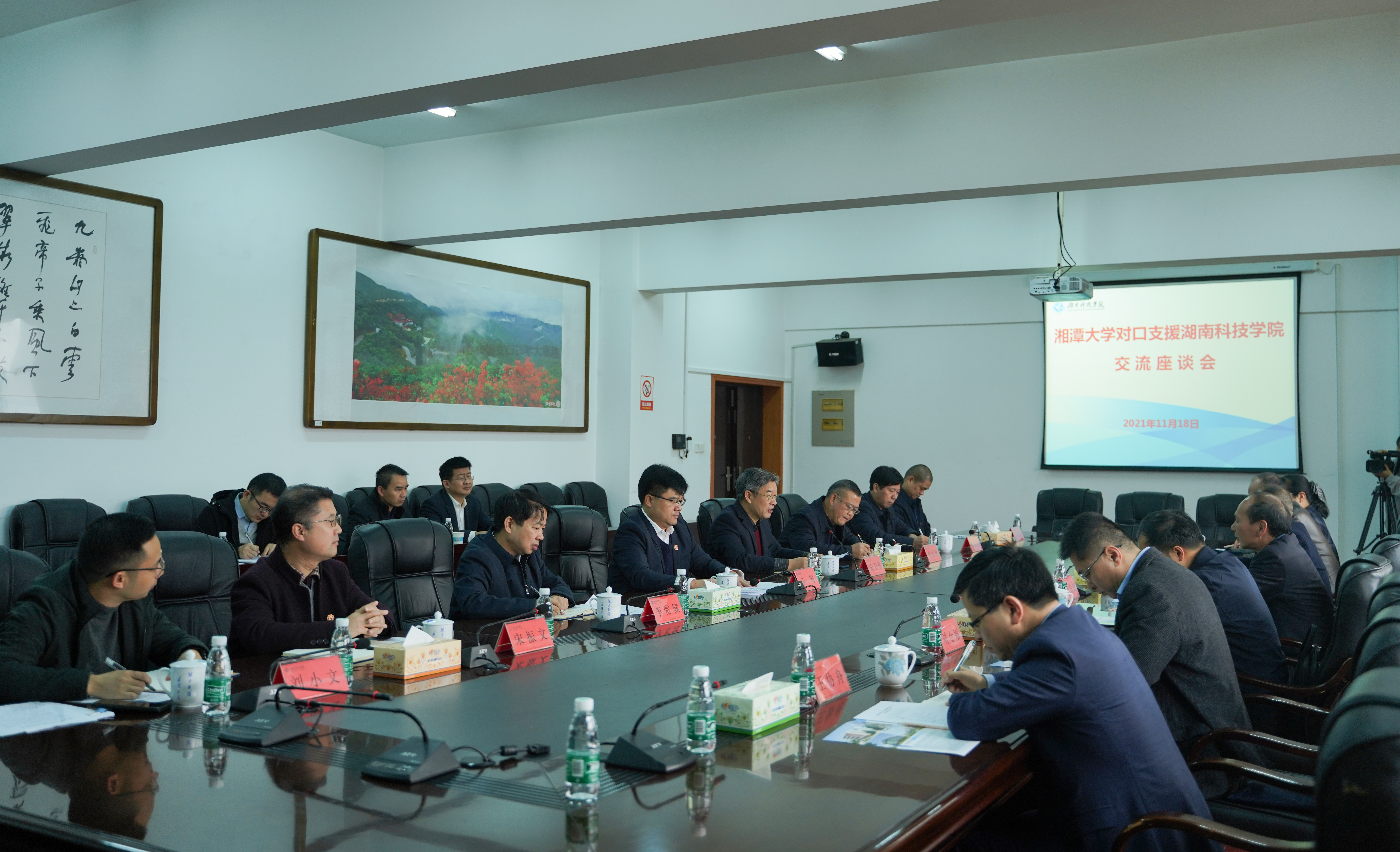 本网讯 为进一步加强两校间合作交流,切实落实《湘潭大学对口支援今年会jinnianhuicom合作协议》,11月18日上午,湘潭大学校长李伯超、副校长盛明科带队来今年会开展对口支援活动。今年会校长李钢,党委副书记宋宏福,副校长李常健、何福林及有关职能部门负责人出席座谈会。会议由宋宏福主持。