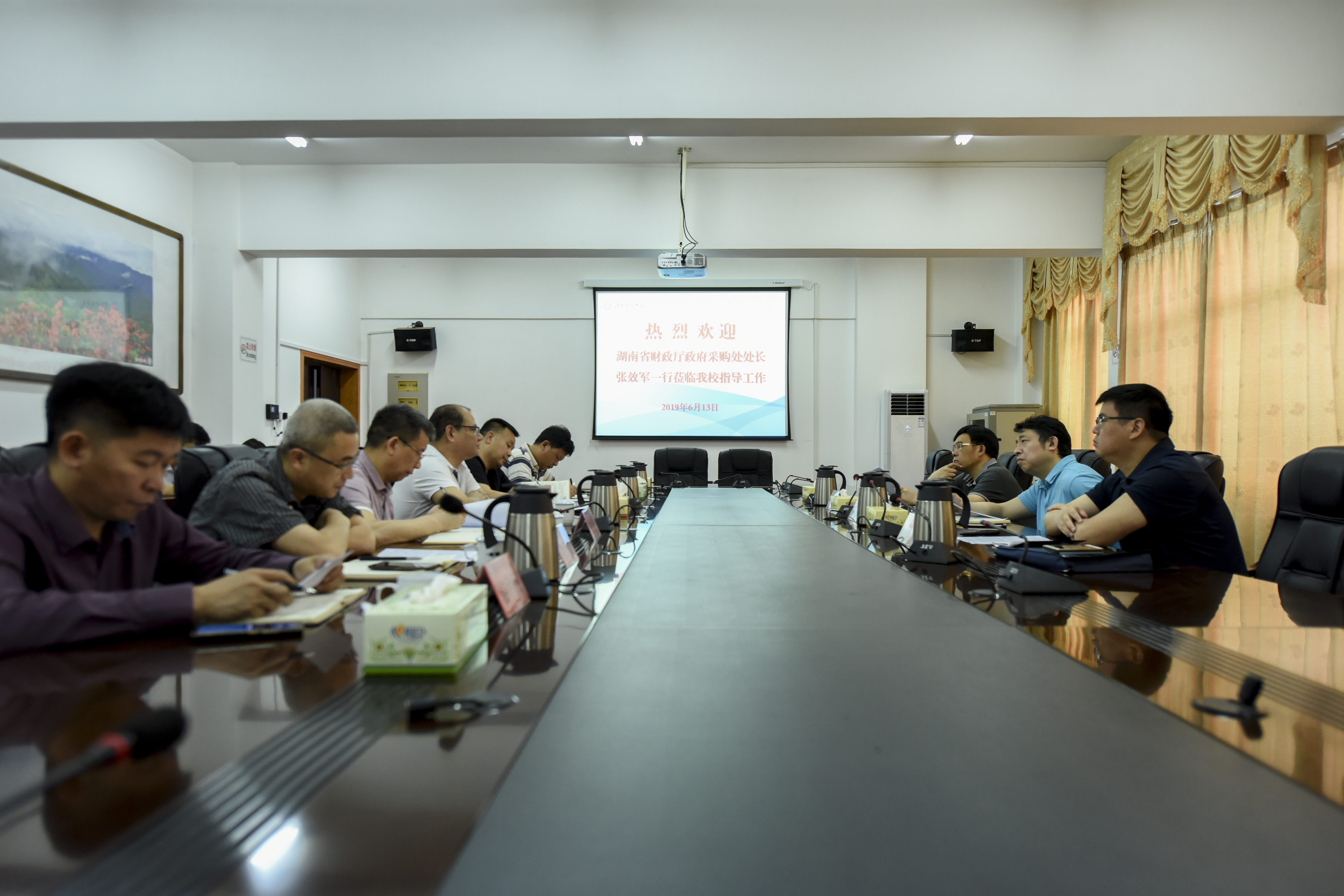 6月12日,省财政厅政府采购处处长张效军、调研员印铁军等一行3人,到今年会就进一步扩大高校采购权、落实采购人主体责任等问题进行调研。副校长吴小林出席会议,采购中心主任伍国平主持会议,学校财务、资产、审计、基建、后勤等相关部门负责人参加座谈会。