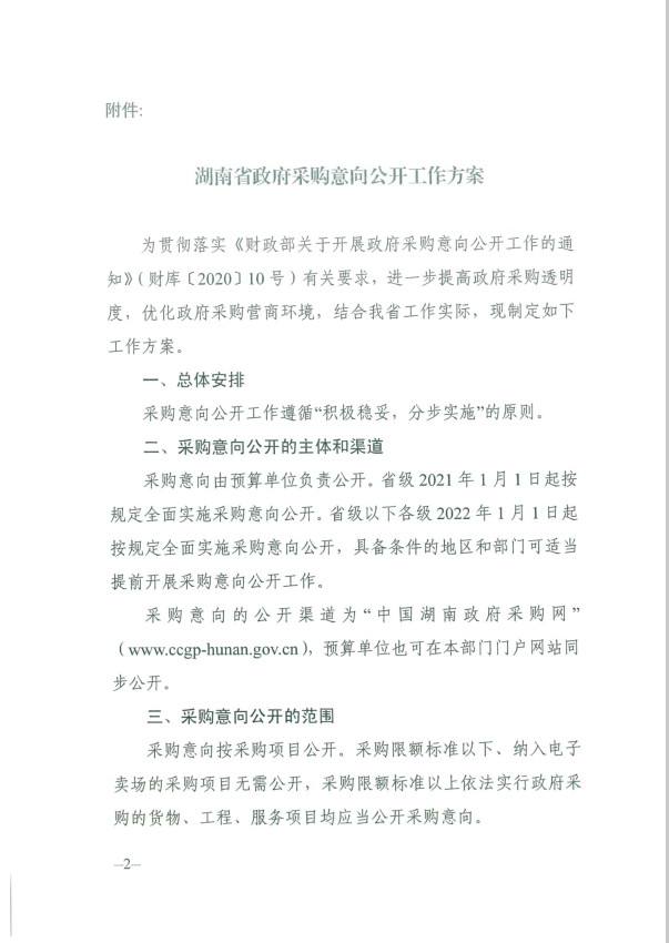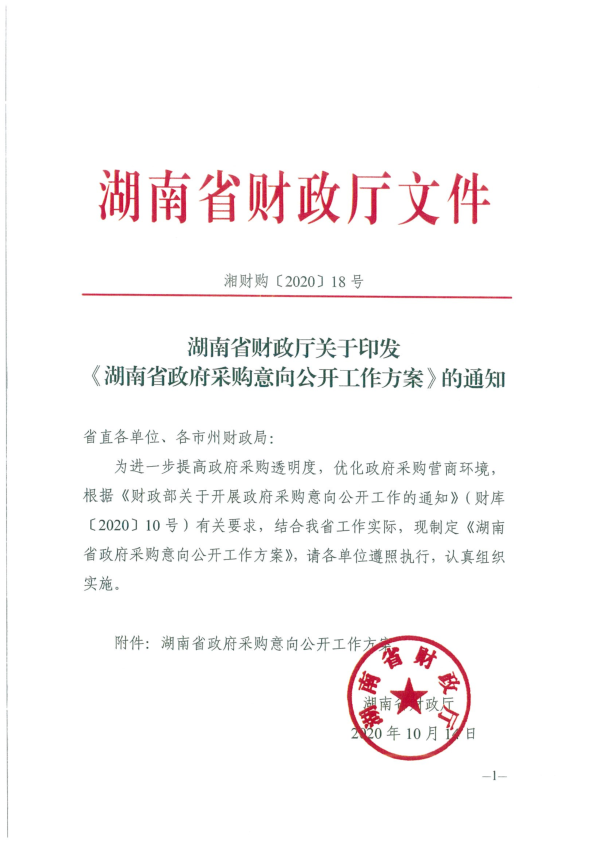 湖南省财政厅关于印发《湖南省政府采购意向公开工作方案》的通知(1)