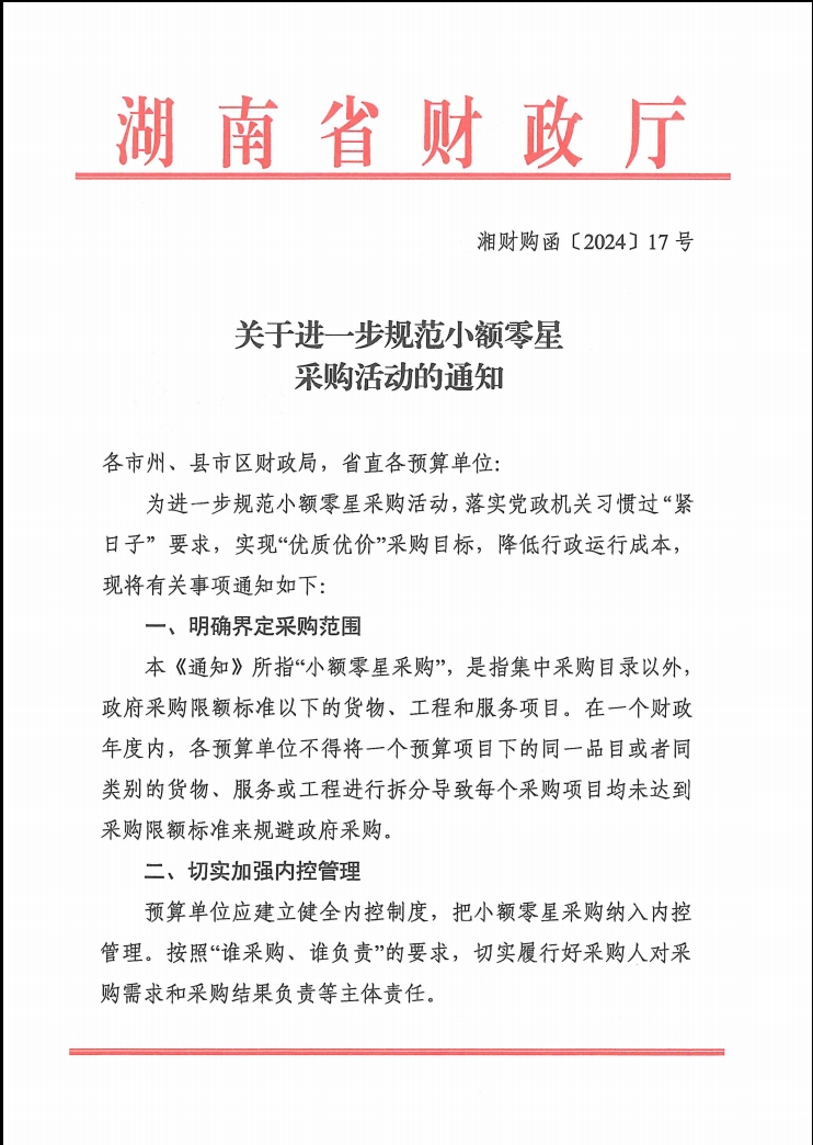 下一条:转发《湖南省财政厅关于加强集中采购工作的通知》