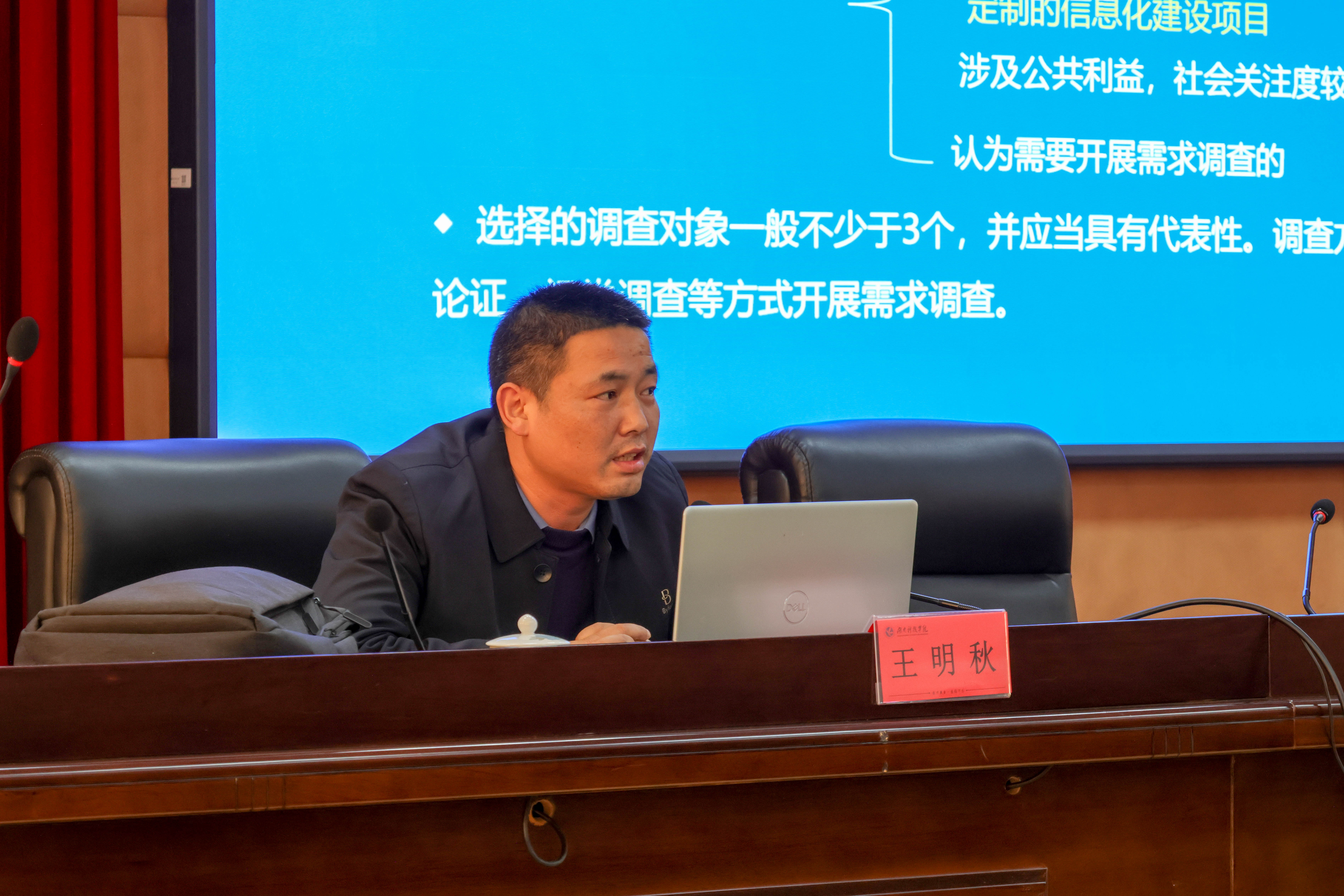 湖南博进招标代理有限公司副总经理,技术负责人王明秋从政府采购基本概述、项目前期注意事项、招标文件编制注意事项、评标相关事项、开标后注意事项、质疑投诉处理、监督检查要点等七个方面对政府采购作了详细说明。