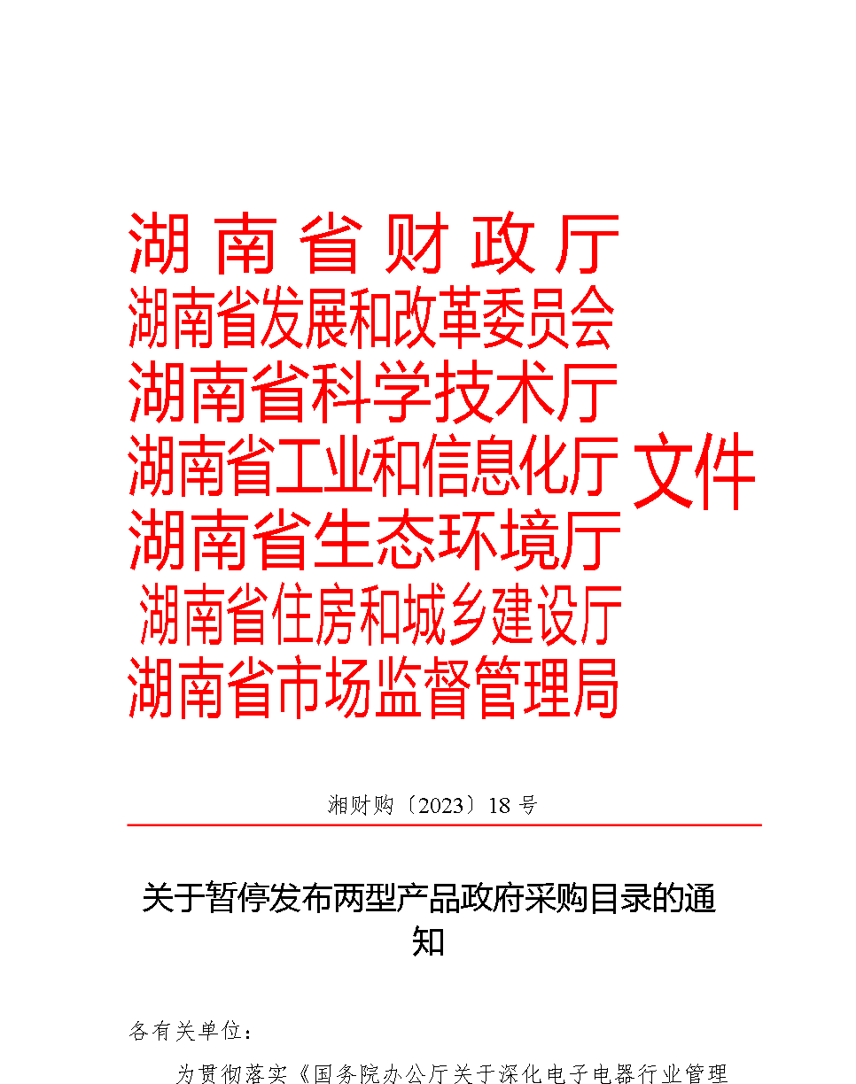 转发:关于暂停发布两型产品政府采购目录的通知