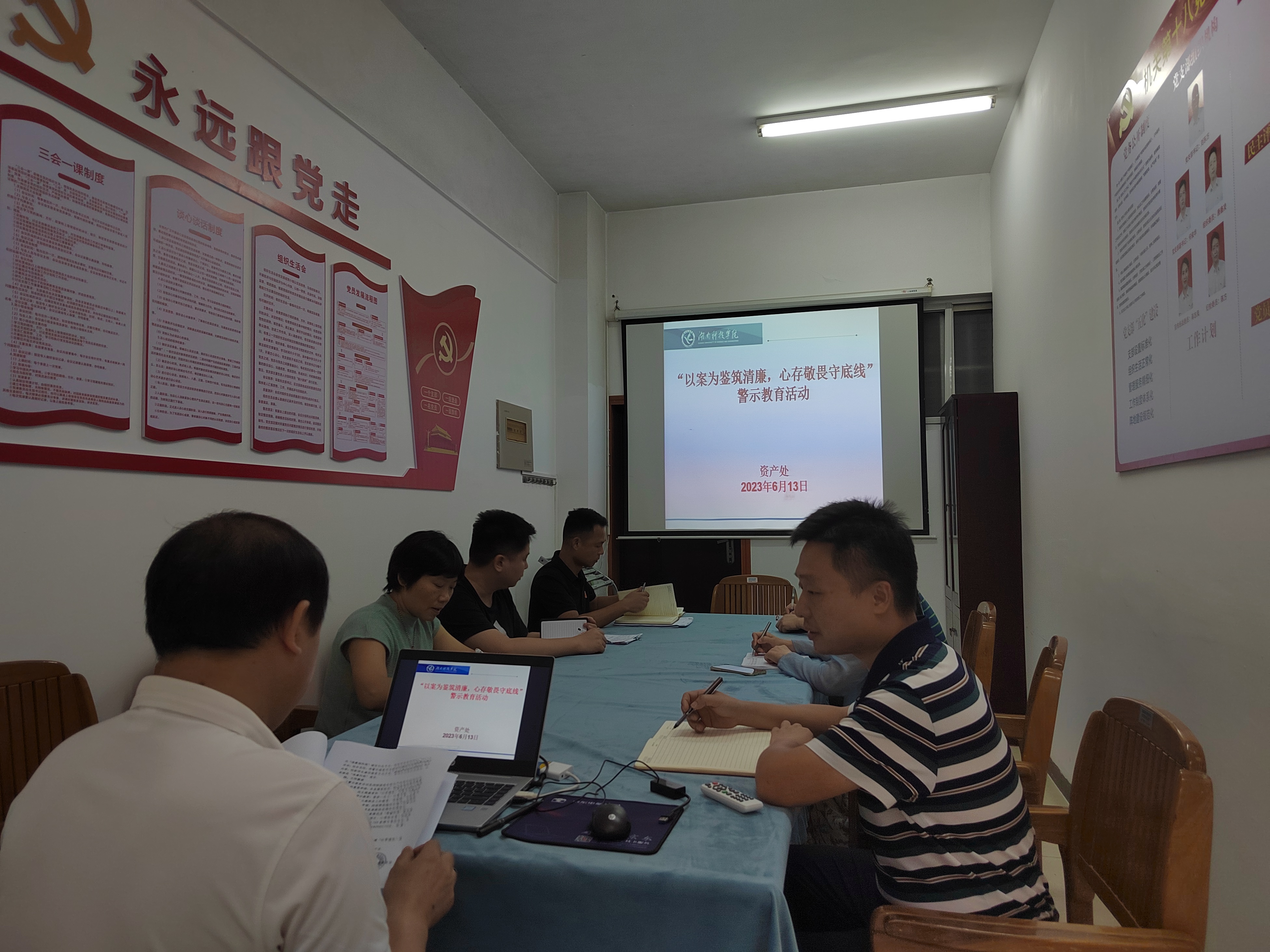 2023年6月13日下午,资产处在行政楼318开展了“以案为鉴筑清廉,心存敬畏守底线”的警示教育活动。