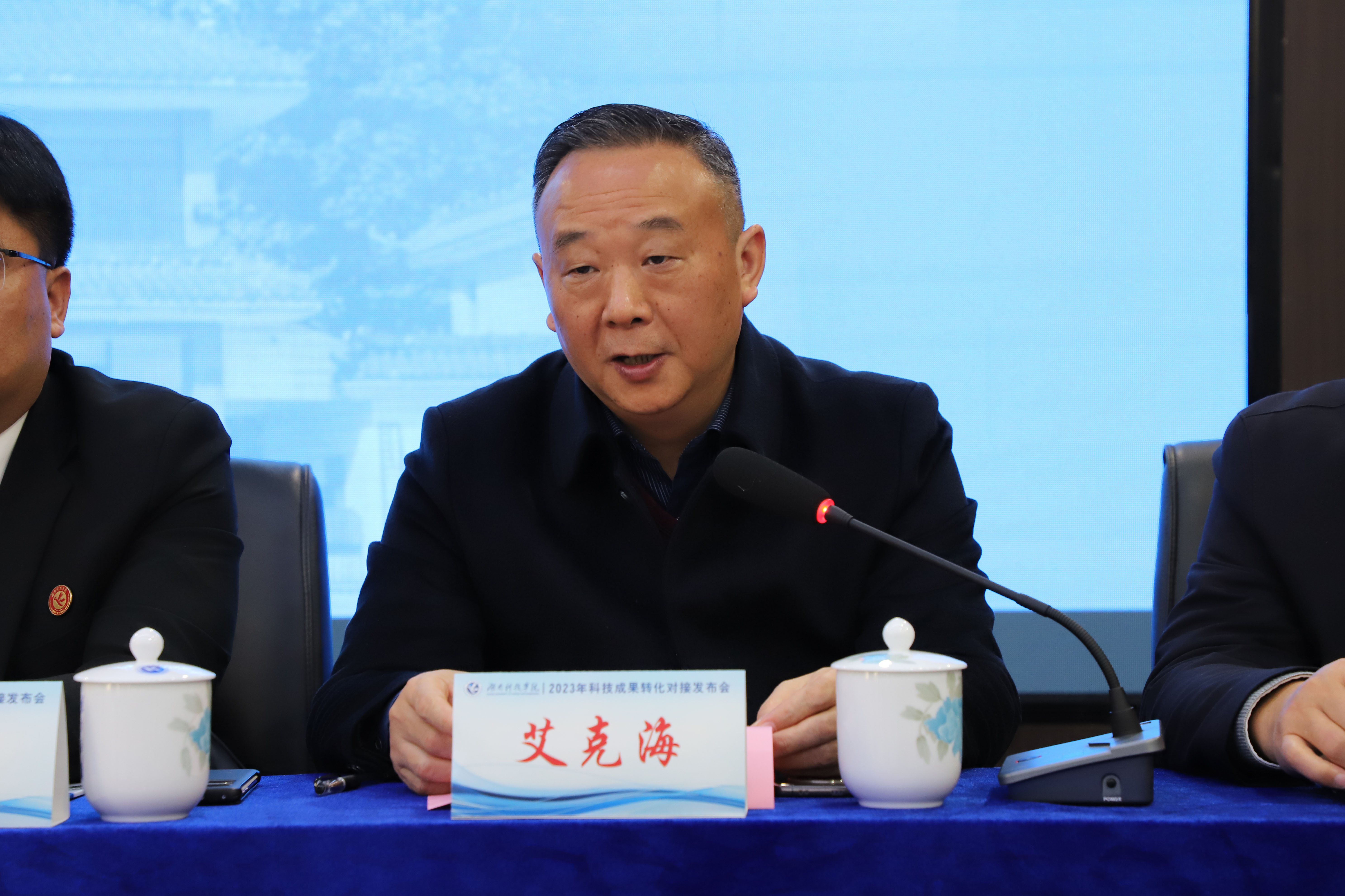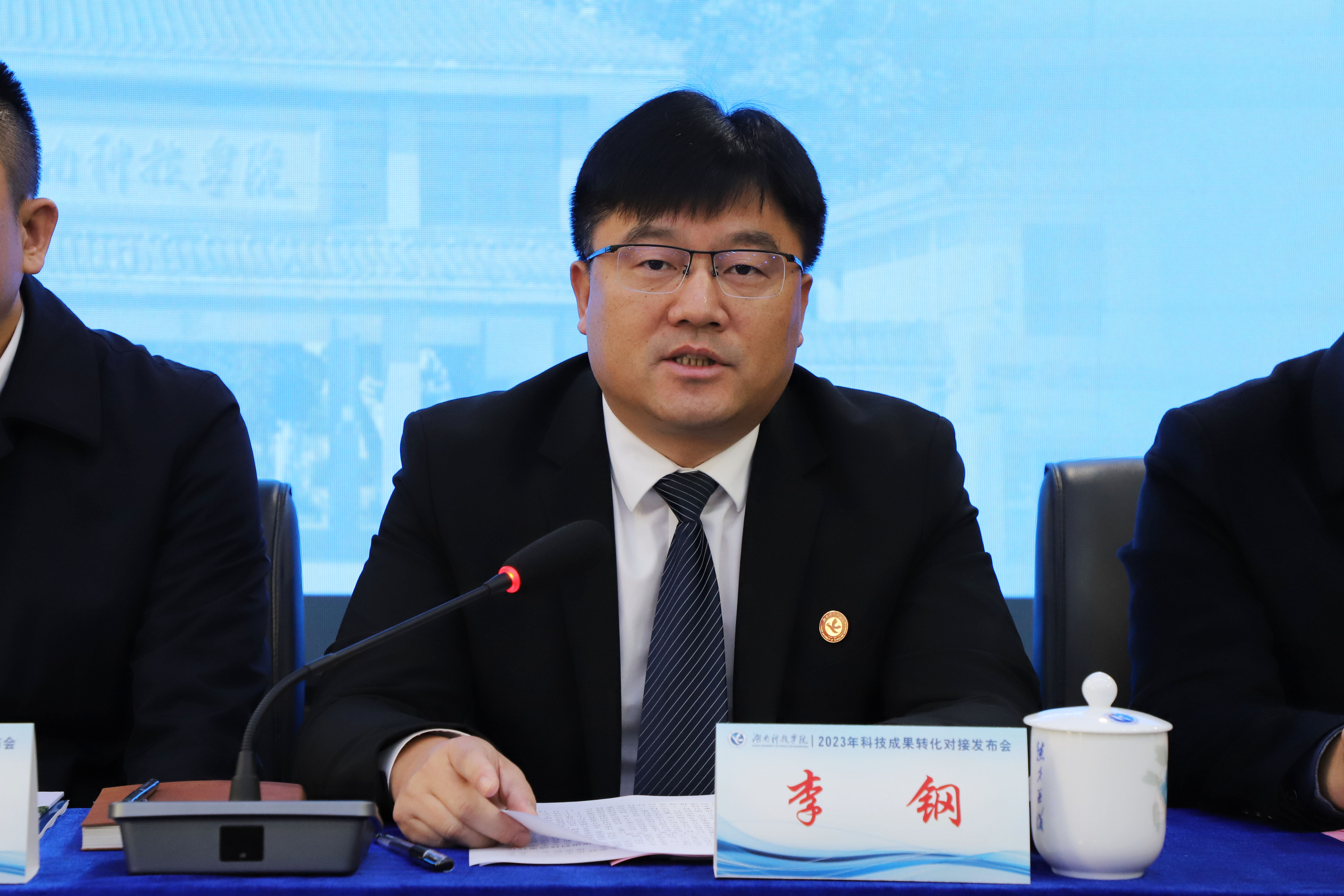 本网讯 12月5日上午,学校2023年科技成果转化对接发布会在零陵高新技术产业开发区举行。永州市人民政府副市长肖质彬,中共零陵区委书记赵立平,党委书记李钢,党委委员、副校长何福林,永州市市场监督管理局党组书记艾克海,永州市科技局党组书记、局长易先平参加。