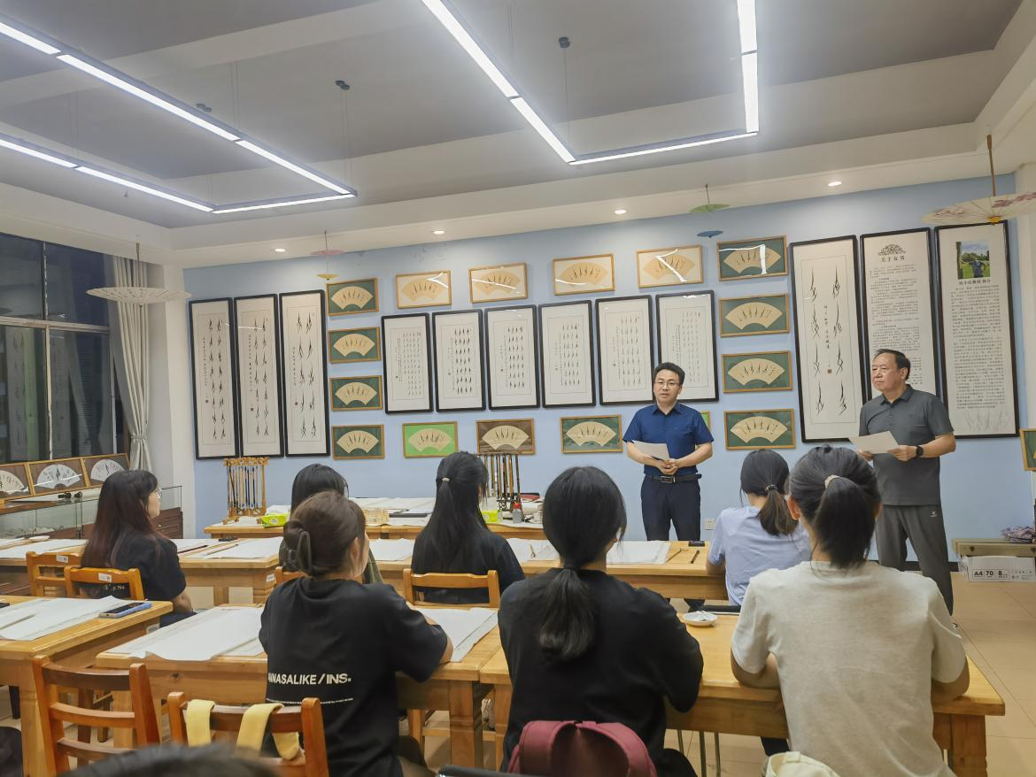 欧小松教授在致辞中表示,女书作为世界上独一无二的女性文字,不仅具有很高的艺术价值,更是一种情感的表达和文化的传承。他鼓励学生们珍惜这次学习机会,深入了解女书的历史渊源、艺术特点和书写技巧,用心感受女书的魅力,传承和发扬女书艺术。