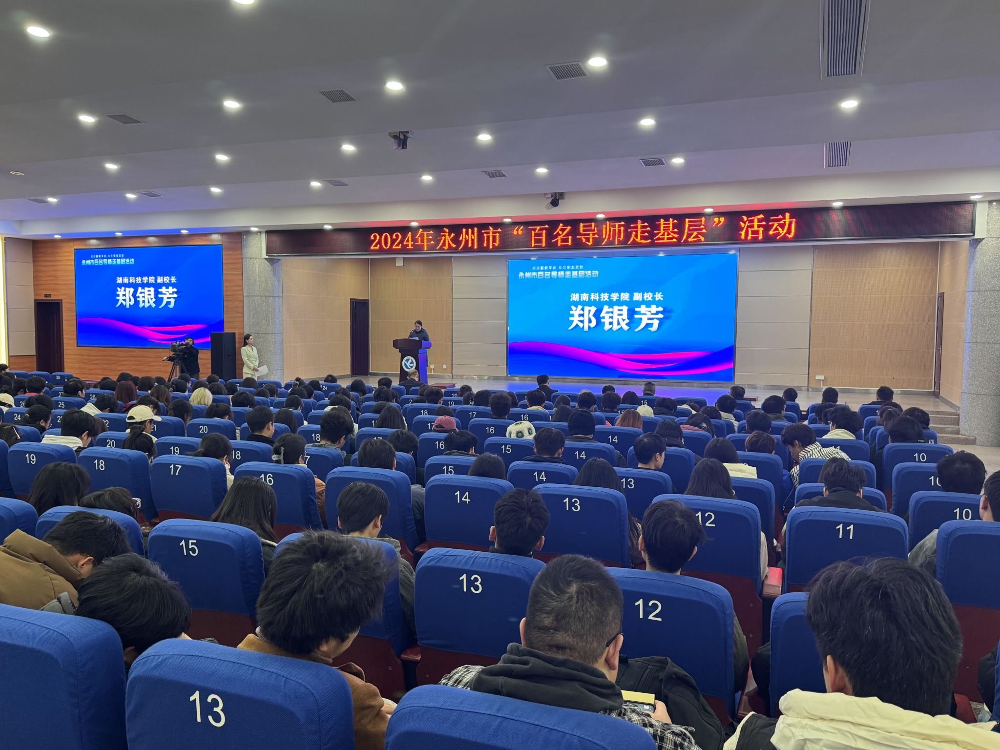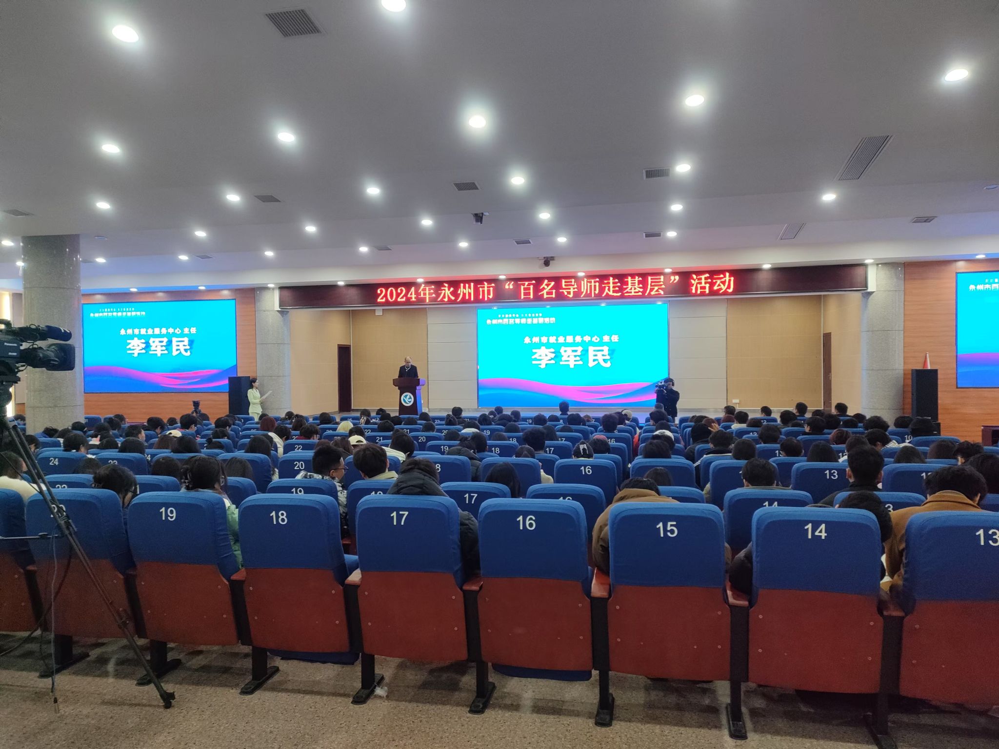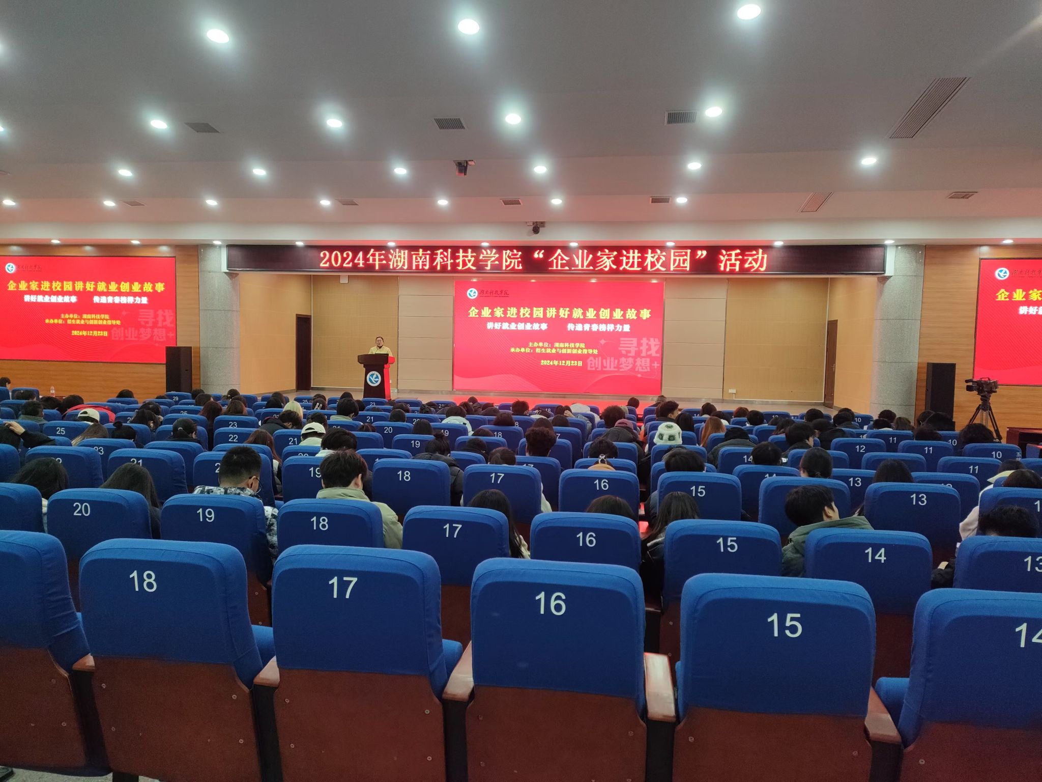 本网讯(通讯员 龙泉)12月23日下午,学校在潇湘大讲堂举办“企业家进校园讲好就业创业故事”暨永州市“百名导师走基层”活动。副校长郑银芳、永州市就业服务中心主任李军民、招生就业与创新创业指导处处长胡清华出席活动,企业家导师团队及300余名学生代表参加活动。