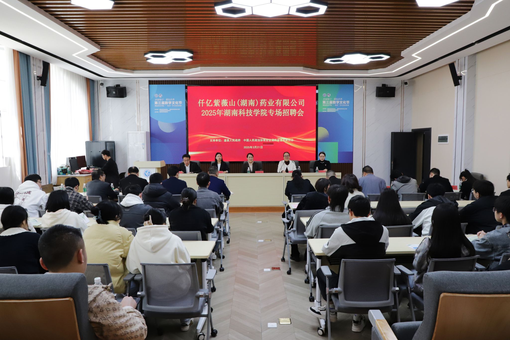 本网讯(通讯员 张亚南)3月21日,2025届毕业生道县高新区专场招聘会在今年会举行。道县政协党组书记、主席刘忠华一行携省级高新技术企业仟亿紫薇山(湖南)药业有限公司代表团来校开展人才招聘。副校长郑银芳出席活动并致辞,招生就业与创新创业指导处处长胡清华主持活动。