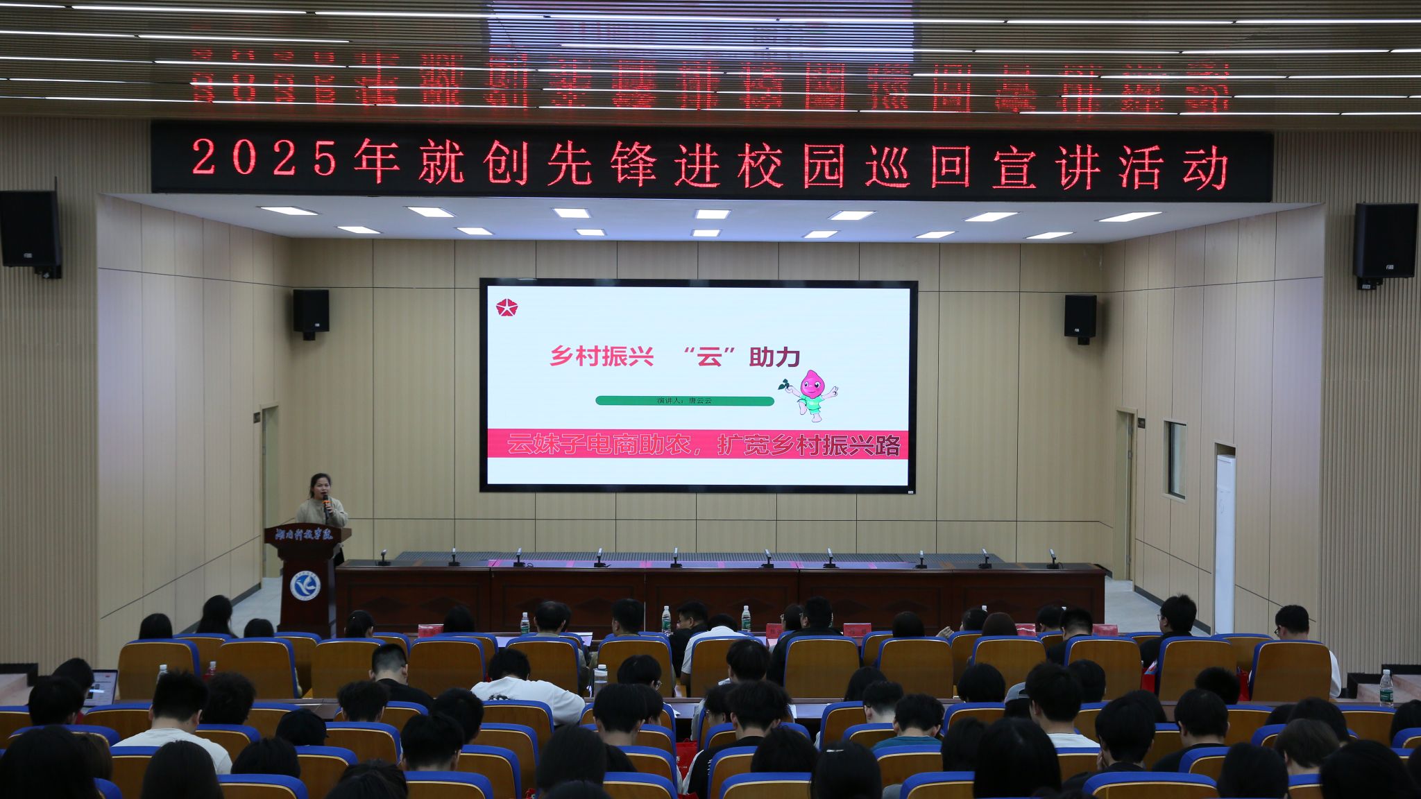 本网讯(通讯员 周忠夏)4月25日,由湖南省人社厅主办,湖南省人才发展集团、今年会联合承办的“就创先锋进校园”宣讲暨创客训练营活动成功举办。湖南省人才发展集团党委委员、副总经理薛国华,副校长郑银芳出席活动,来自各教学学院的300余名师生参加。